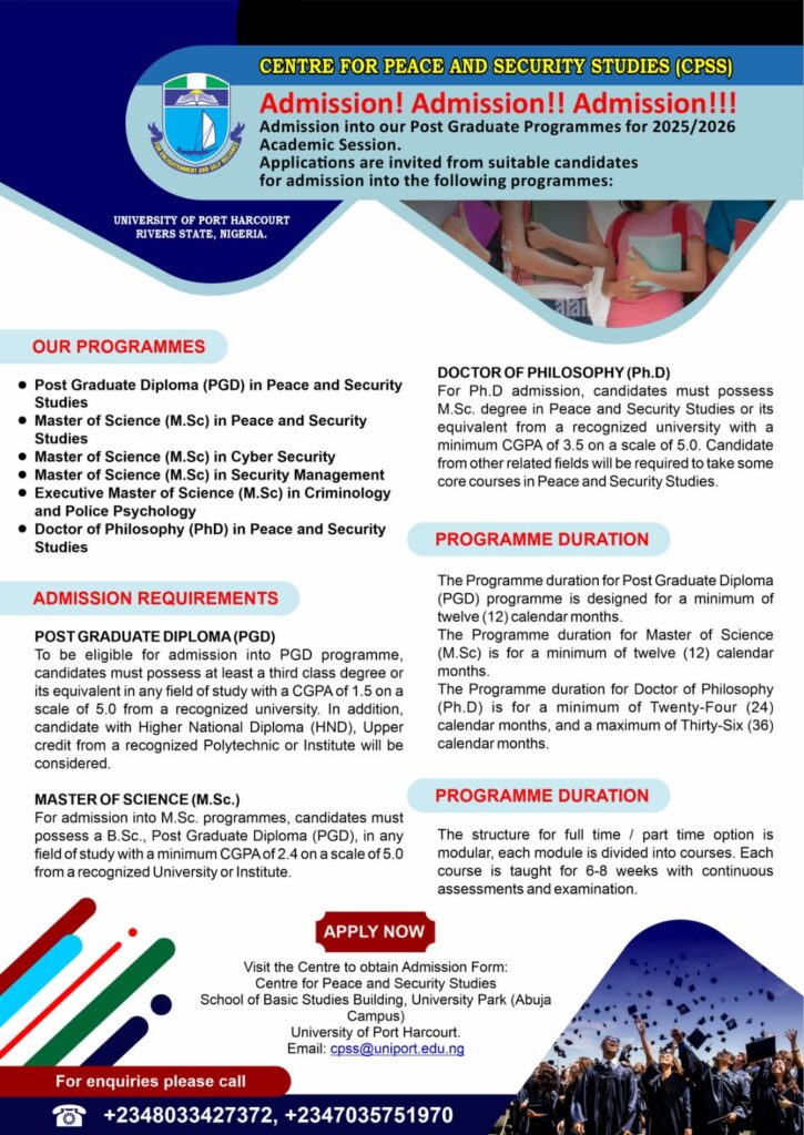 Admission into our Post Graduate Programmes for 2025/2026 Academic Session